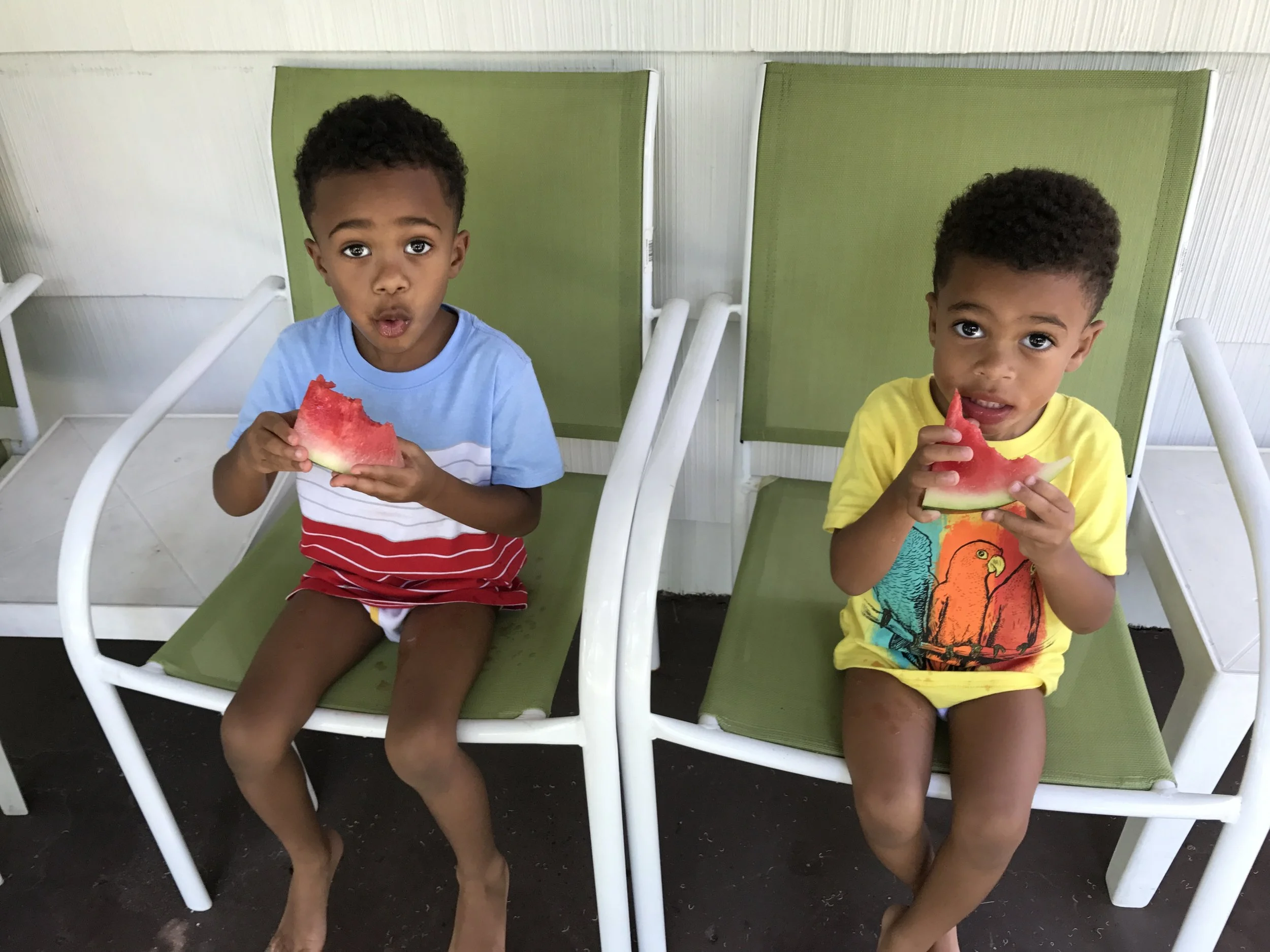 Melissa’s boys eating watermelon on the porch of her childhood home.